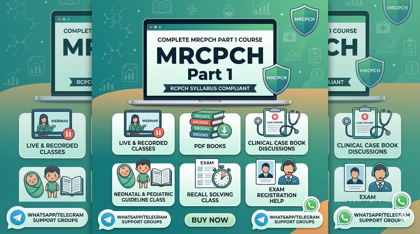 This comprehensive course combines live teaching, recorded classes, clinical discussions, and high-yield study materials to ensure you cover everything needed for the MRCPCH Part 1 exam.